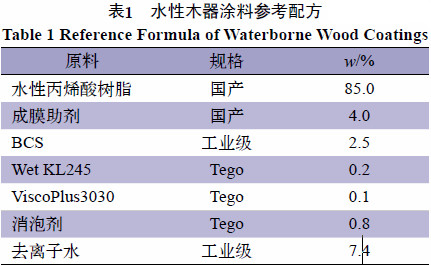水性木器涂料參考配方(見表1)。