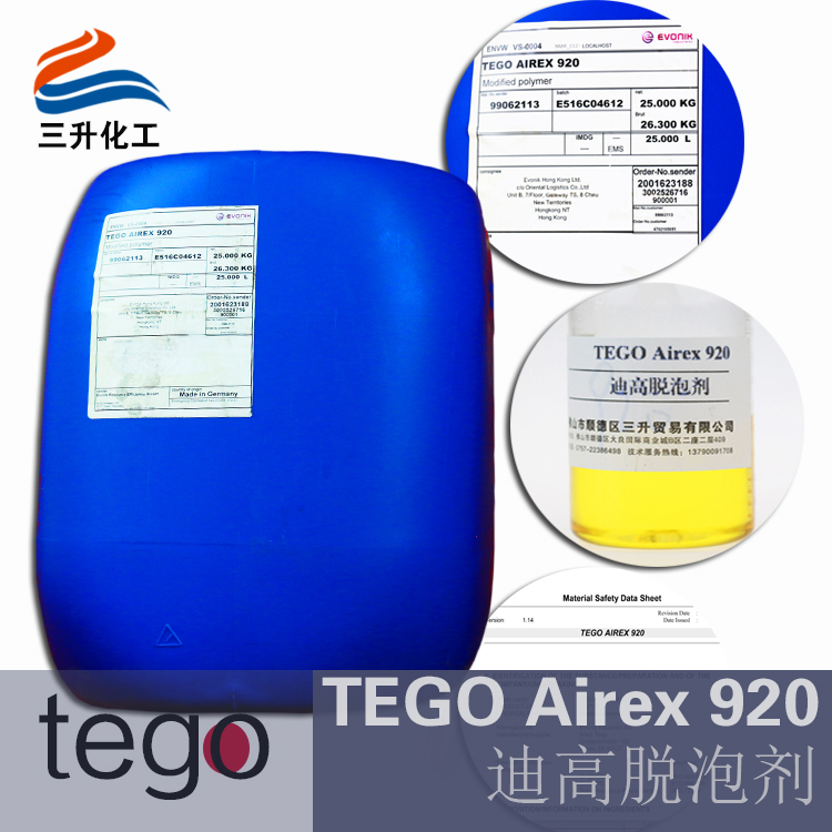 以下為三升貿易暢銷產品,贏創德固賽迪高助劑的TEGO Airex 920消泡劑。用于輻射固化涂料的脫泡劑。